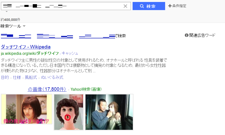同じダッチワイフでも、少し検索の仕方を変えるだけで、本当に様変わりするのですね。