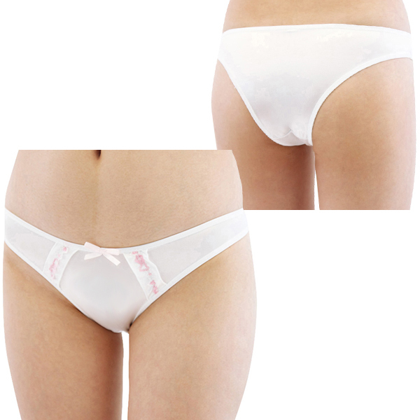 「女性」と言うよりは「女の子」というイメージがぴったりの清純な魅力を持つショーツ。 全体の白をベースとして、フロントに軽くアクセントとしてデザインされたレースとピンクのリボンが上品な仕上がりです。 |