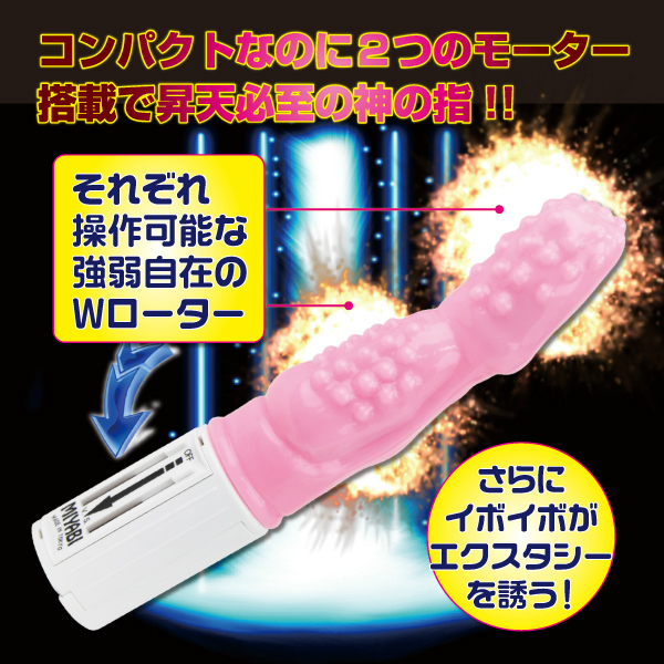 一人で潮吹き体験!?本物の指のように自由自在に動くピンクカラーのバイブ「ゴッドフィンガーW」。 コンパクトで扱いやすいボディ!小さくても機能性が重視されており、本体2箇所にモーターを搭載!存在感抜群の無数のイボイボが、アナタに最高の刺激を与えてくれます!一人でも二人でも楽しめるバイブです。 是非、神の指で昇天しちゃって下さい!単4電池×3本使用。 |