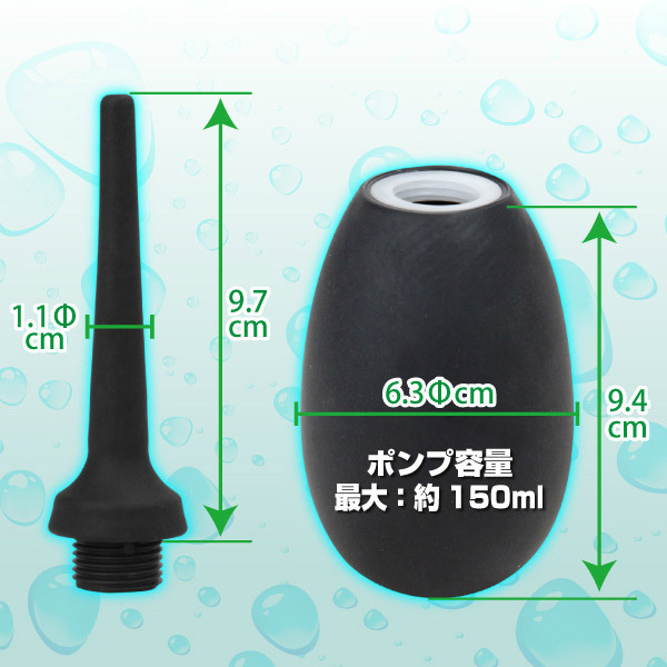 | ■仕様:パッケージ:25.1×9.7×7.3cm 本体:ディルド9.7×1.1φcm・ポンプ9.4×6.3φcm(容量約150ml) |