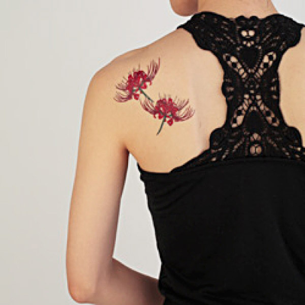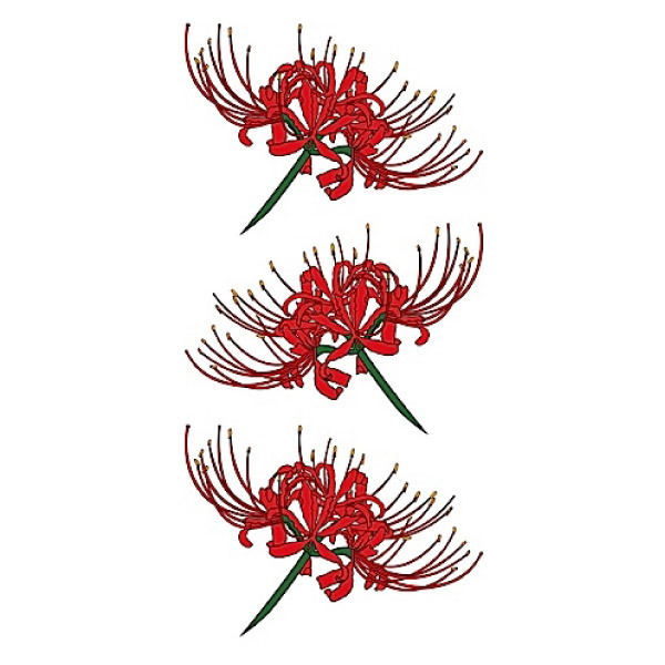 美しく咲き誇る曼珠沙華の花が色っぽい!リアルに仕上がるレギュラーサイズの本格派タトゥーシール。 肌に馴染む特殊な素材を採用し、入浴しても剥がれずに2〜3日楽しめます。 セクシーな露出系コスチュームとも相性バツグン!素肌を美しく飾るオシャレのワンポイント用に最適なボディーシールです。 首や胸、手足などお好きな場所に貼り付けてお使い下さい。 |