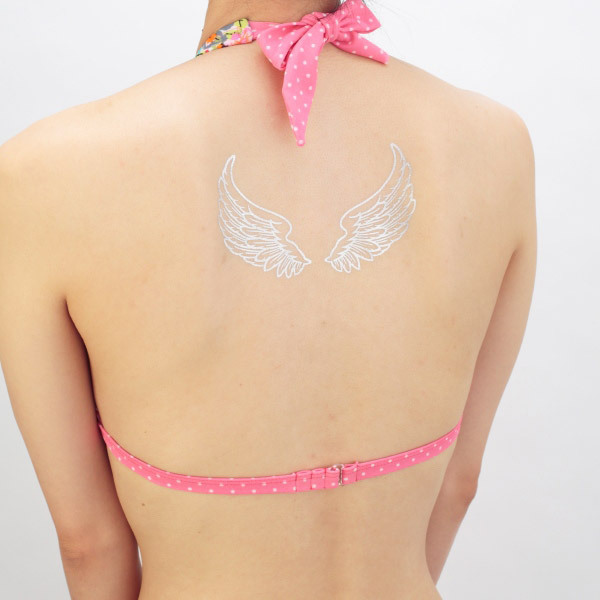 背中にシルバーの羽を持つ美しいエンジェルに!簡単貼り付けタイプのタトゥーシール「天使の羽・銀」。 水を使って気軽に貼り付けられるので、パーティーやお祭り等のイベントにピッタリ!水に強く、入浴しても2〜3日は持続可能!セクシーなコスプレ衣装とも相性バツグンのボディシールです。 剥がす際は市販のメイク落としや専用のリムーバーをご使用ください。 |