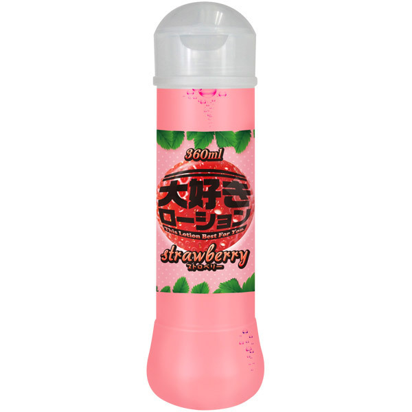 ひとつ持っていれば全種類を集めたくなっちゃう、カラフルでいい香りのラブローション!その名も「大好きローション」。 こちらの商品は、ストロベリーの香りがする内容量360mlのボトルローションです。 いざという時にパッと開けられるワンタッチキャップを採用!5種類の色と香りから選べる、女性ウケのいい可愛いアイテムです。 |