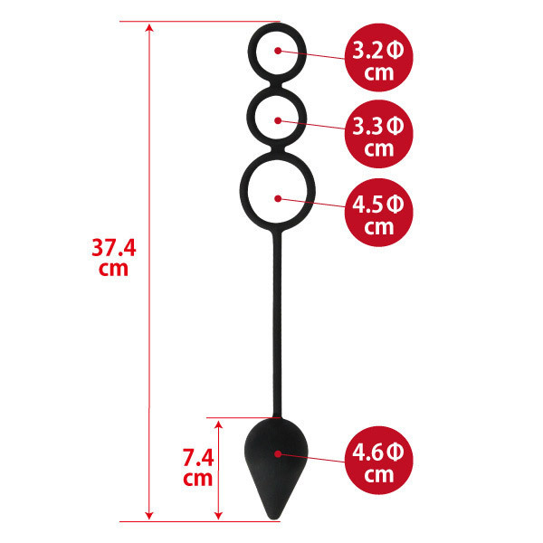| ■仕様:パッケージ:20.0×13.0×5.5cm 本体:全長:37.3cm 内径小3.1φcm・中3.1φcm・大4.5φcm プラグ部分:7.3×4.6φcm |