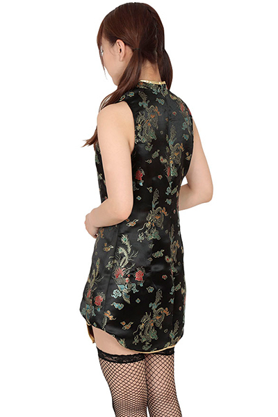 黄色でくっきりとパイピング!ダブルスリットがエロ可愛いミニチャイナ服。 ●黒地に縁起のよい金龍や鳳凰をプリント●こまごまとした部分に赤や青の差し色を追加●アジアンノットの紐ボタンを飾りつけて華やかさをプラス●襟元の縦スリットから谷間がチラリ●裾のダブルスリットは太股の正面が見えるセクシー仕立て。 着るだけでカンフー少女っぽくなれるコスチュームです。 ※ストッキングは付属しません |