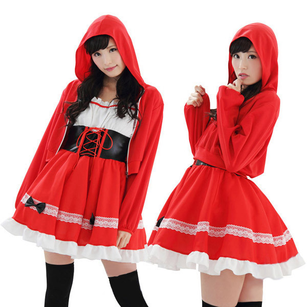 あの有名なおとぎ話の主人公になりきっちゃお!真っ赤な衣装がインパクト抜群な赤ずきん風コスチューム。 ●胸元ギャザー&コルセット風デザインが可愛いワンピース●赤ずきん風のフード付きミニ丈パーカー●スカート部分はレースをクルッと一周。 黒のミニリボンや裾のフリルがキュートさをさらにアップ!ハロウィンパーティーが盛り上がるコスプレ衣装です。 ※ストッキングは付属しません。 |