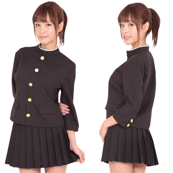 トップスが学ラン?!応援団で頑張る女の子をイメージしたキュートな制服コスチューム。 ●七分袖・女性サイズに仕立てた丈の短い黒色学ラン●詰襟制服にキラキラと映える金ボタン●ミニスカートはシンプルなプリーツ仕立て。 上下2点セット!長鉢巻に白手袋で男子顔負けのエールを送る元気な女子校生風。 アニメに登場しそうなかっこいいコスチュームです。 ※靴下は付属しません。 |