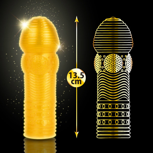 超眩しい!ゴージャス感満点オールカバータイプのペニスサック。 ●煌びやかなゴールドカラー●よく伸びるストレッチ素材・しっかりフィット●安心安全なエラストマー製●先端から根元まで覆うフルカバータイプ●様々な形状がダイレクトに刺激を伝えます●勃起力&早漏防止効果に期待。 これさえあれば夢にまでみたロングプレイが可能になる!性に悩む男性の身も心もしっかりサポートする男性補助グッズです。 |
