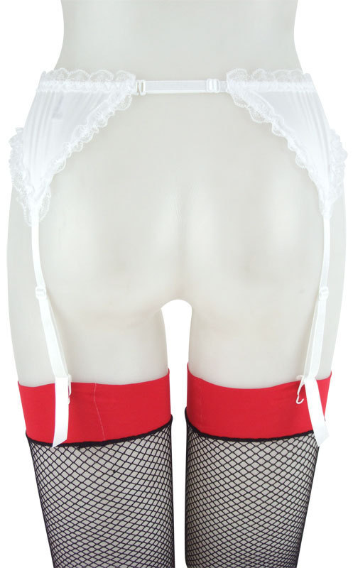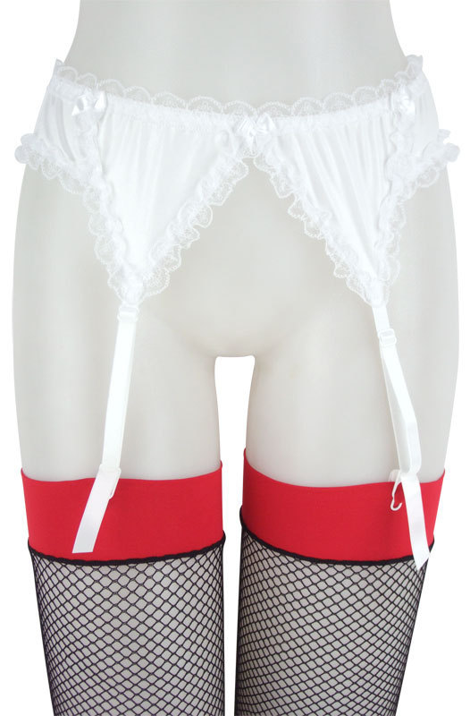 セクシーなガーターベルトもホワイトカラーならキュートに♪光沢素材とフリルレースのガーターベルト。 ●清楚な印象の純白カラー●エレガントな光沢素材●縁取りはラブリーなスカラップレース●腰回りはアジャスター調整可能。 ツヤ感のある純白のグロス素材が特別感を高めてくれるガーターベルト!ガーターストッキングだけでなく、ニーハイソックスとも相性抜群です。 ※ストッキングは付属しません |