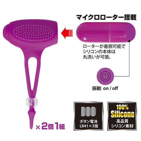 キュッと絞って乳首に装着♪悶絶刺激のシリコン製ニップルローター。 ●両乳首用本体2個セット●高品質シリコンを使用●側面に突起ブラシ付き●穴に乳首を通して装着●クリアビーズで調整可●乳首&乳房に振動刺激●シリコン部は丸洗いOK●ローターは着脱可能。 乳首直下にブルブル振動+突起ブラシの悶絶刺激!「プリティラブ」シリーズの高品質シリコン製おっぱいローター。 付属のマイクロローター(電池交換可)を取り外せば、本体は丸洗いできるのでとっても衛生的!単体で使えば乳首責めだけでなく、クリトリス責めにも役立ちそうです。 |