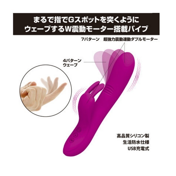 まるで指先のようなアクションをバイブで実現!Gスポットを突くようにウェーブする新感覚バイブレーター。 ●なめらかな高品質シリコン製●先端&子機に高性能モーター●4パターンのウェービング機能●7パターンのダブル振動を搭載●簡単メンテナンスの生活防水●電源はUSB充電式。 手マンのようにGスポットを刺激する「プリティラブ」シリーズのバイブレーター。 うさ耳型のクリバイブもいい仕事をしてくれます。 |