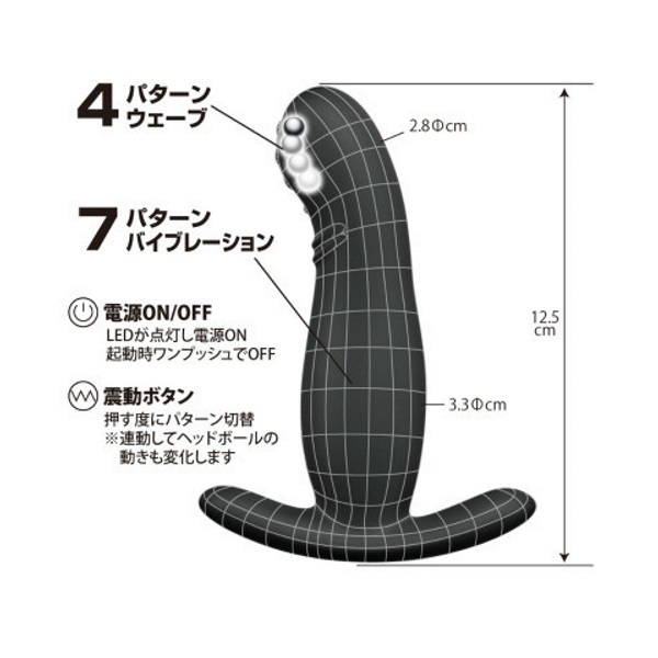 指先でこねくり回されるような新快感!高性能な前立腺責め電動アナルプラグ。 ●肌触りの良い高品質シリコン●全長12.5cm・最大径3.3φcm●スムーズ挿入のスリムボディ●開発しやすいストッパー付き●丸みのある先端にはイボ突起●内部のボールが小刻みに上下●先端は4段階にウェービング●芯まで響く強力モーター内蔵●盛り沢山な7種振動パターン●簡単メンテナンスの生活防水●電源はUSB充電式。 先端のピンポイント刺激と強力バイブレーションで快感をお届け!美しいシルエットの先端に特殊ギミックを仕込んだ「プリティラブ」シリーズの電動アナルグッズ。 イボ内側の内蔵ボールが上下して、中からグリグリと圧迫するように前立腺を刺激!スムーズに挿入できるスリムボディで、アナル入門者の開発用にもオススメです。 |