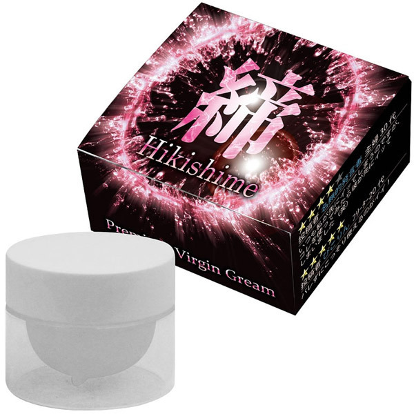 引き締め成分ミョウバンを主成分に、美肌成分を配合した女性のためのクリーム「締−ひきしめ−(Hikishime) プレミアムヴァージンクリーム」。 内容量は7gです。 |