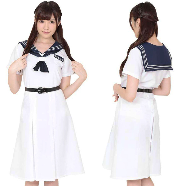 純白カラーが眩しい、清潔感と可愛らしさを見事に演出できる紺色のセーラー襟がついた制服コスプレです!白を基調としたワンピースは膝下ぐらいまであるので控えめで清楚なイメージを与えてくれます。 架空の学校制服をイメージした2次元ならではの良さと、胸元のリボンと白い3本のライン使いが学校制服のキュートさも抜群に演出してくれています!パーティ―やパレードの衣装としてもオススメです。 |
