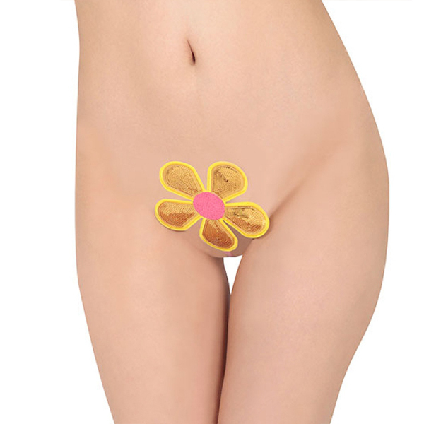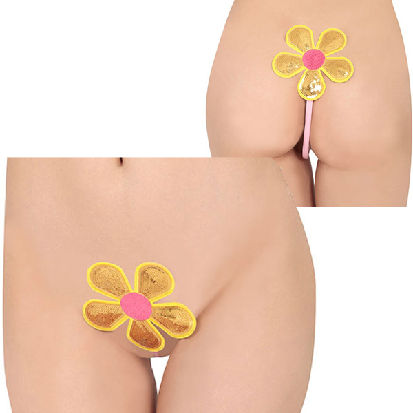 一瞬で装着できる♪黄色×ピンクの大きなお花が大事な部分に咲き誇る8mm幅のI型ストリング。 極細のI型ストリングが食い込むようにフィット!キラキラと輝く大きなお花デザインがファンシーでインパクト大なセクシーストリングです。 |