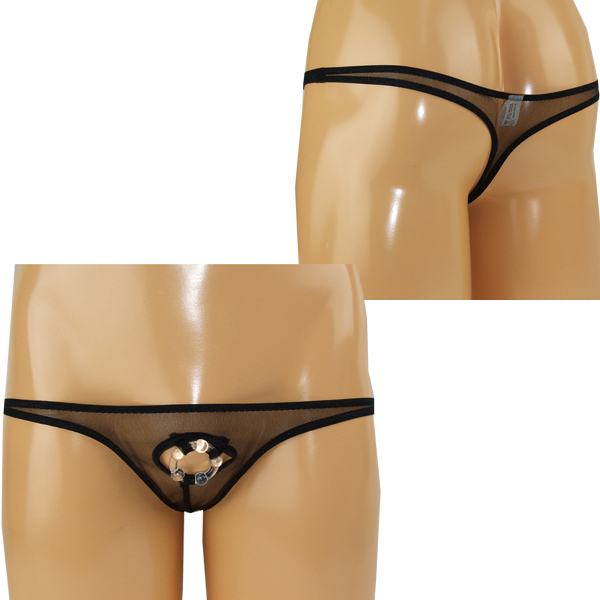 逞しいボディをアピールするならセクシーな小悪魔Tバックで決まり!極薄生地のフロント部分を丸く切り抜き、締め付け刺激するイボ付きリングを取り付けたメンズ用の日本製オープンランジェリー。 透ける生地から見える健康的な肌に思わずドキッ!魅惑のボディで小悪魔に誘惑するメンズ用穴あきTバックです。 |