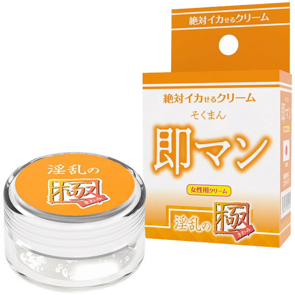 女性を変身させる「絶対イカせるクリーム (即マン 淫乱の極)」。 ガラナ、トウガラシ、マカ、大豆イソフラボン、イチョウ、オランダガラシなどを秘伝の製法で調合。 |
