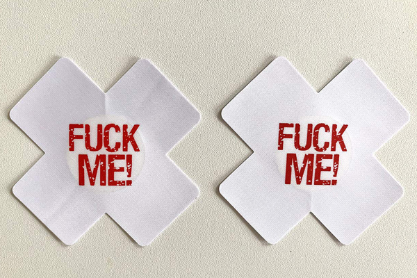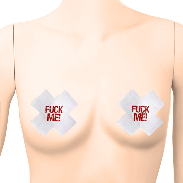 こんな風に主張されたらたまらない!「FUCK ME!」と大胆にアピールする2枚1セットのニップレス(白)。 バッテン型のニップルシールが貴方の秘めた想いを叫ぶ!乳首に触れる中央部分には肌保護として粘着しない素材を使用しています。 擦れ・透け防止にも◎ |