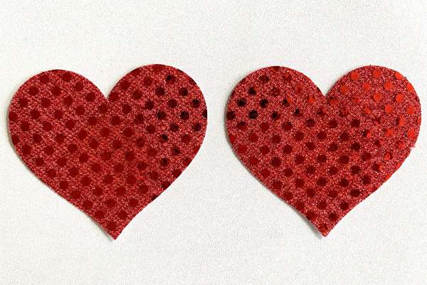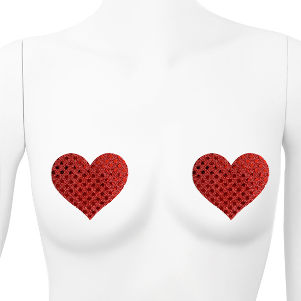 キラキラ煌めくラメで貴方の想いを伝えるハート型のニップレス(赤)。 シンプルなデザインで使いやすい!擦れ、透け防止に是非どうぞ♪バストトップ裏面中央部分には粘着しない素材を使用。 2枚1セット |