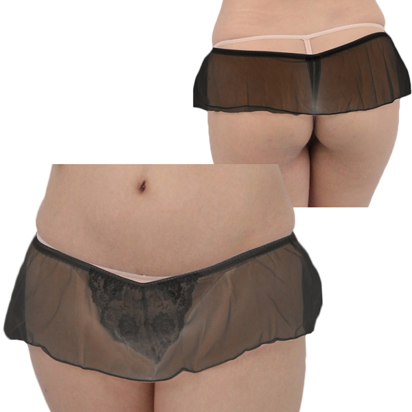 動くたびにヒラリと揺れる♪透け感のある極薄スカートと、レース刺繍が施されたショーツが一体型になった日本製セクシーTバック(黒)。 スケスケのレースから見える姿にエロスを感じさせる大人なデザイン!特別な夜に着用したい一枚です。 |