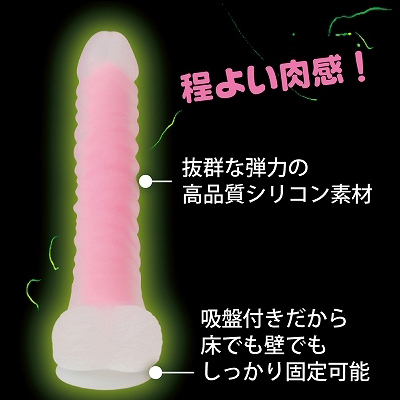 蛍の光のように薄暗闇でほのかに光る!もっちり質感の気持ちいい吸盤付きの夜光ディルド。 肌触りの良い高弾力シリコンを使用し、中はしっかりめ、外は柔らかな二層構造で設計!ベッドの上はもちろん、吸盤があるので壁や床などにピッタリ吸着させてお使いいただけます。 |