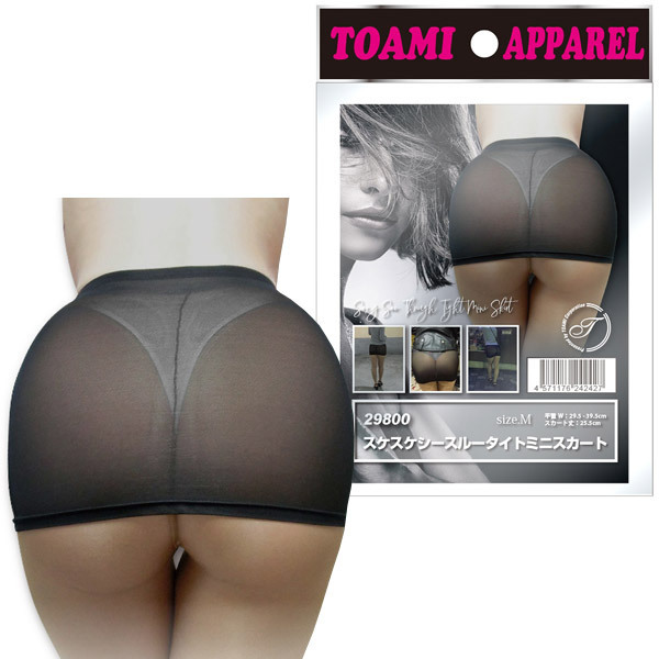 ストレッチ性に優れ、身体にぴったりフィットする!ストッキングのような薄手のシアー素材で仕立てたミニスカート(黒)。 |