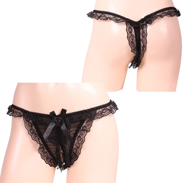トップページ > ランジェリー > オープン ブラ・ショーツ(穴あき) > レースの揺れ感が際立つオープンショーツ ブラック