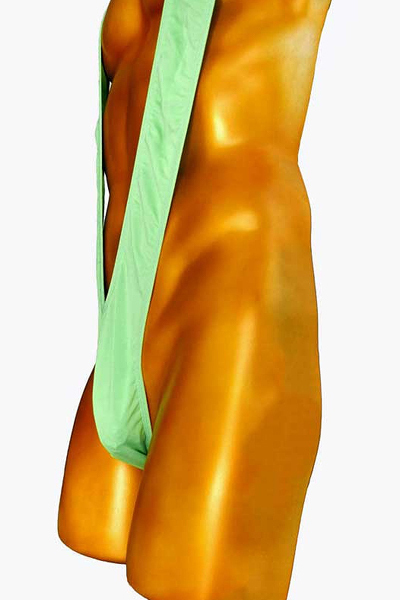 逞しい身体を強調する爽やかな男性用スリングショット。 股間から背中へ回り込むように大きくV字に走る生地で筋肉を猛アピール!シンプルでオーソドックスなタイプのマンキニです。 グリーンカラー、フリーサイズ |