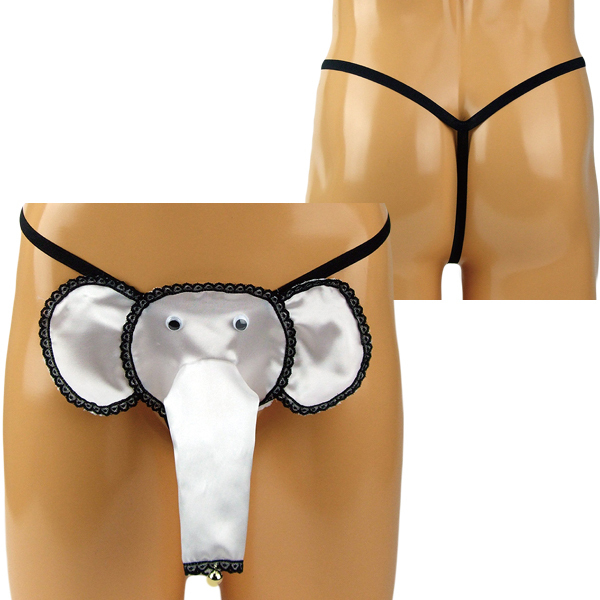 ホワイトカラーの光沢生地で仕上げたユニークなゾウさんGスト。 股間を最大限にアピールできるストリング仕様!鼻の先端は鈴がついており、動くたびにリンリンと音を鳴らします。 日本製、Mサイズ |