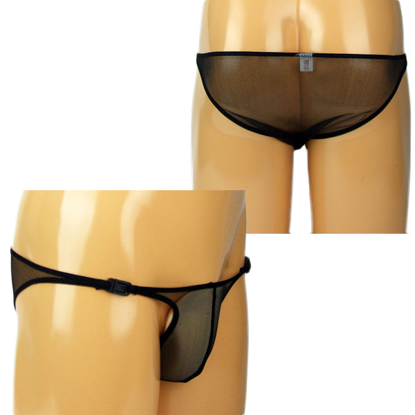 トップページ > ランジェリー > メンズ ショーツ・ビキニ > メンズ キラキラシースルーワンタッチバックル付きハーフバック ブラック