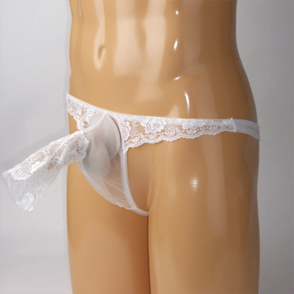 トップページ > ランジェリー > メンズ ショーツ・ビキニ > メンズ スケスケシースルー素材のセクシーな生地にレース付きぞうさん貫通型TB ホワイト