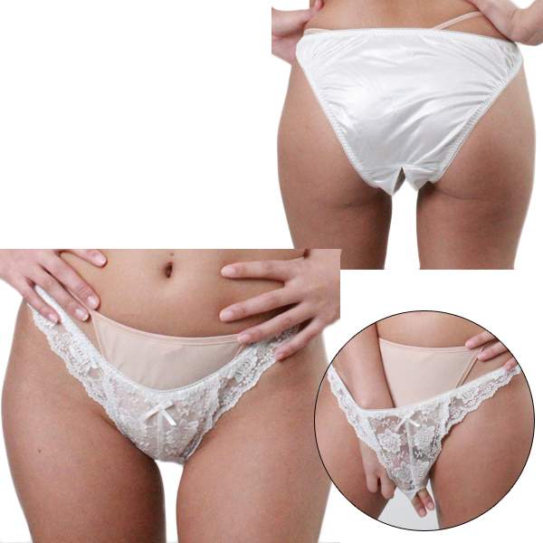 トップページ > ランジェリー > オープン ブラ・ショーツ(穴あき) > 柔らかな光沢生地にレース付きオープンフルバック 2Lサイズ ホワイト