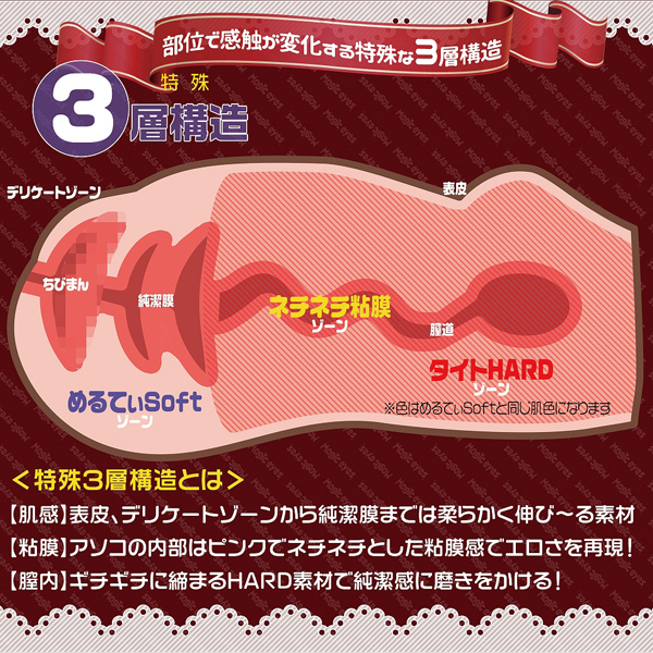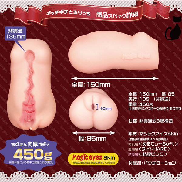 部位ごとに感触が変化するウェーブ形状の非貫通オナホ。 肌は伸縮する柔軟素材を、中はピンクでねっとり絡む粘膜を再現し、膣内全体にはギチギチと締め付ける高弾力素材を使うことで純潔感をアップした特殊3層構造仕立て!入り口はわずか1cmながら、柔軟素材でしっかり伸びてとっても丈夫♪人気素材マジックアイズスキン仕様で、肉厚な450gのボリュームボディ。 ローション付 |