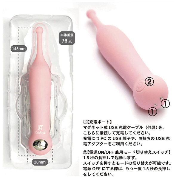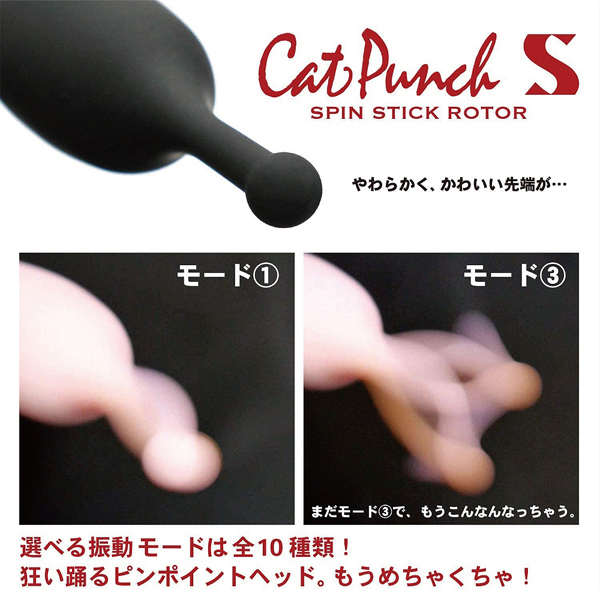 触覚が高速で狂い踊る!高周波&高速旋回でスピン振動するUSB充電式スティックローター「キャットパンチ」。 球体のついたピンポイントヘッドが敏感部位を刺激!強く押し当てるようにすれば旋回するヘッドが小刻みに叩く♪振動パターンは全部で10種類、メンテナンスしやすい生活防水仕様!1つのボタンで簡単操作できるUSB充電式ローター。 充電ケーブル付属、ブラックカラー |