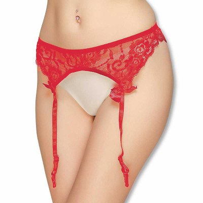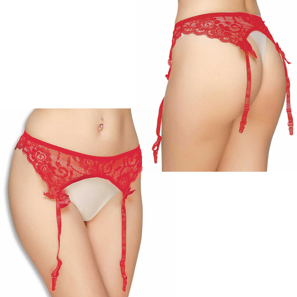 情熱的な赤が大人の色気を演出!美しいフラワーレースの定番ガーターストッキング!両サイドのリボンのワンポイントもキュート♪ |
