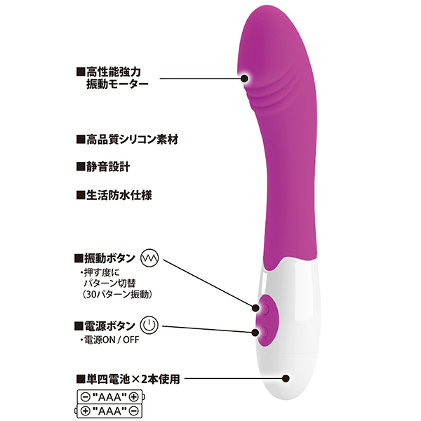 ヘッド部分に搭載されている超強力なモーターがGスポットをダイレクト刺激する「プリティラブイージースティックビッググランスバイブレーター」。 充電が面倒な方でも安心の単4電池2本で駆動するタイプ♪ストレート型で奥までどんどん突けて、30種類もの豊富なバリエーションパターンを搭載した嬉しいバイブです。 挿入シャフトはシリコンを採用!ワンボタンで操作も簡単♪静音設計で生活防水仕様だから丸洗いもできてメンテナンスもしやすいです。 |