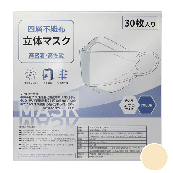 トップページ > 特殊アイテム > 特選 > 四層不織布立体マスク 30枚入り (ハニー)