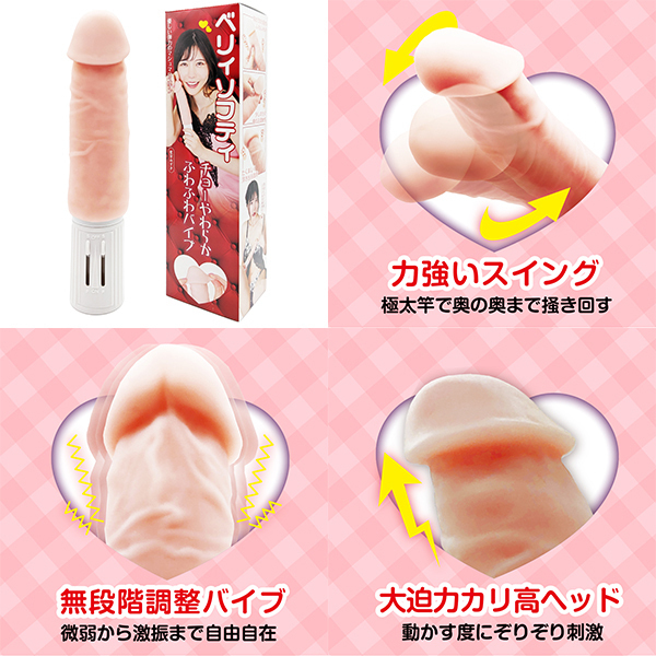大きくたくましいボディとチョーやわらかふわふわなバイブ「ベリィソフティ」大迫力のカリ高ヘッドと、極太の竿が力強いスイングで奥の奥まで掻き回す!最大の特徴は、とっても伸びる優しい弾力のマシュマロスキン。 ふわふわもちもちな感触は敏感な部分を刺激することでも楽しめます。 スイングとバイブがそれぞれ無段階調整可能。 お好みの強さに合わせてお使いいただけます。 竿は少しの力で曲げることができるため、角度を調整して快感ポイントを狙い打ちに。 大きさ・性能ともに満足感抜群のバイブです。 |
