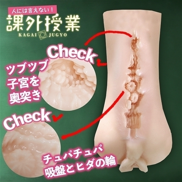 入口は感じて肥大したクリトリスを再現。 まったりとしながらしっかり締め付ける大人の入り口を再現。 挿入するとフジツボの様な吸盤突起が吸い付いてきます。 手で強く握りながら動かすことで、気持ちいいバキューム感を味わえます。 突起のイボとの相乗効果で気持ちのいいストローク。 その先には優しく指で竿をしごかれるような感覚が味わえる2本のリングヒダ。 スライドする度に気持ち良さがこみ上げます。 最奥部には縦にびっしりと並んだ粒が亀頭全体を刺激してくれます。 |