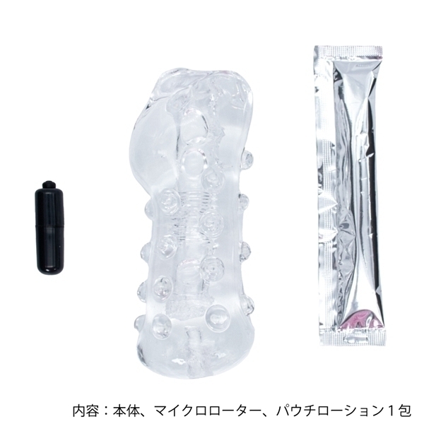 快感・尿道タッチ!ハードな高弾力!入り口から大ぶりなイボがゴリゴリ刺激!中盤に細かい三角溝がゾリゾリと竿を撫で回す!そして奥はプチっと突起が尿道に優しくタッチ!最奥ポケットに付属のローターを差し込み亀頭に高刺激振動で更に快感増!!! |