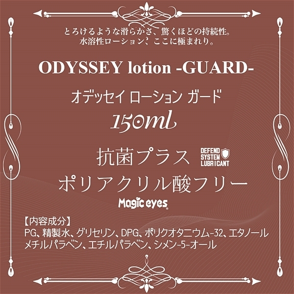 ポリアクリル酸フリーの水溶性ローションでありながらオイルローションのような滑らかな使用感。 糸を引くようなタイプのローションでは無いので馴染ませながら少しずつ量を増やしていって下さい。 GUARDは抗菌成分を配合しておりますので各種グッズにも安心してご使用頂けます。 ボトルにはワンタッチキャップを採用しておりますので取り回しも簡単です。 150mlの使い切りタイプ。 日本製 |