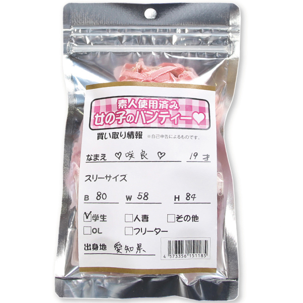 トップページ > 特殊アイテム > マニア向け > 素人使用済み女の子のパンティー