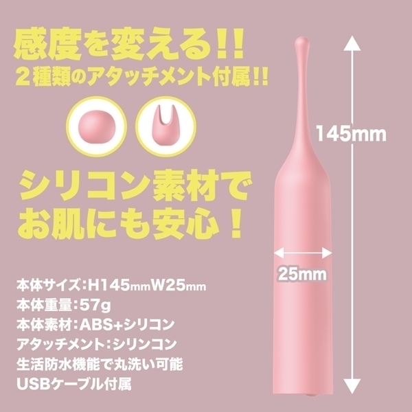 超ピンポイントシリコンヘッドローターのクリチョク。 小さなヘッドだから集中した毎分12000回転の強振動を2種のシリコンヘッドを使い分けてお好みの場所で楽しんでください。 振動パターンも10種搭載、本体重量57gと超軽量で生活防水タイプの為、丸洗い可能。 ●カラー:ピンク |