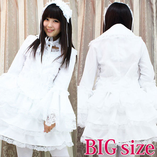 たっぷりのフリフリレースでボリューム感を持たせた、真っ白なチュールメイド服(BIG)。 ボリューミーなフリル使いがゴージャス!大きめの衿は取り外しが可能。 キュートなヘッドドレスもセットになった、ゴスロリ系コスプレ衣装です。 ※水洗い不可、塩素系漂白剤による漂白不可、アイロンは中温で当て布使用、ドライクリーニング可、色落ちの可能性があります。 ※こちらの商品は在庫の状況によりお届けまでに4日〜7日程度かかる場合がございます。 |