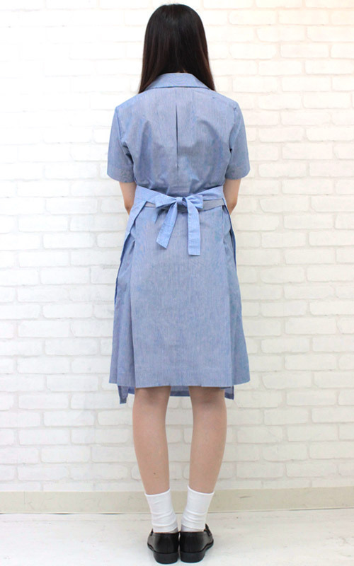 | ■仕様:Mサイズ:B78〜93cm・W60〜75cm 丈:ワンピース93cm(袖丈22cm、肩幅39cm)校内着(ウエスト部分より)68cm セット内容:ワンピース(前ボタン)・ベルト・校内着(エプロン、首元スナップボタンあり) |