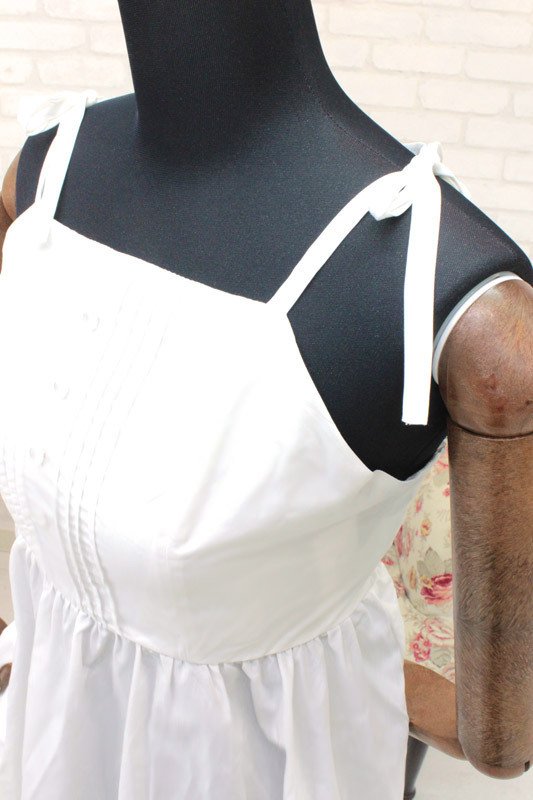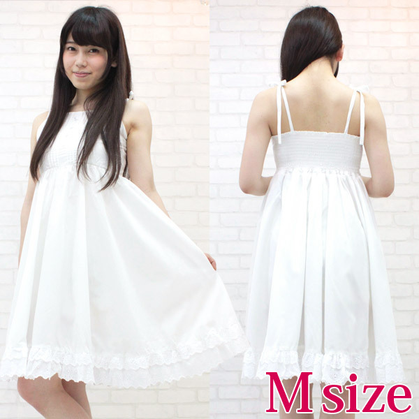 肩の上で可愛くリボン結び!真夏の太陽がとっても似合う、白ワンピース(M)。 ピンタックやレース、背面のシャーリングなどで、お嬢様風にデコレートしたワンピースです。 リゾートや避暑地などのサマードレスとしても活躍するコスチュームです。 ※水洗い不可、塩素系漂白剤による漂白不可、アイロンは中温で当て布使用、ドライクリーニング可。 ※こちらの商品は在庫の状況によりお届けまでに4日〜7日程度かかる場合がございます。 |