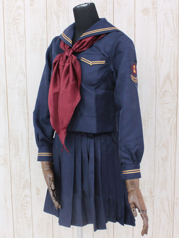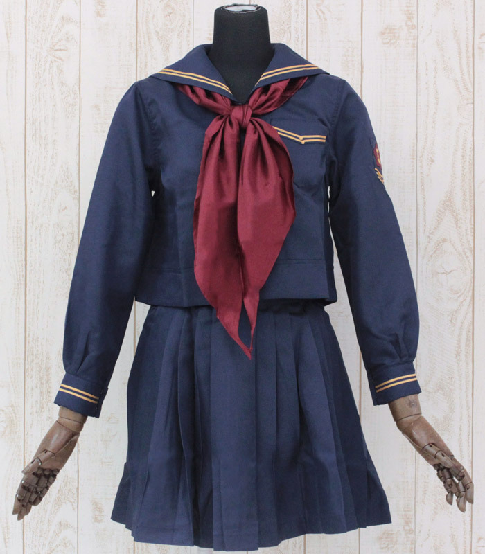 胸当てのないセーラー襟がクラシック!長い伝統を誇る女子学院風の制服コスチューム。 濃紺にエンジ色の長いスカーフがポイント!茶系のダブルラインが珍しい長袖セーラートップスと、無地のプリーツスカートがエレガントな制服コスチュームです。 ※水洗い不可、塩素系漂白剤による漂白不可、アイロンは中温で当て布使用、ドライクリーニング可、色落ちの可能性があります、ご注意ください。 ※こちらの商品は在庫の状況によりお届けまでに4日〜7日程度かかる場合がございます。 |
