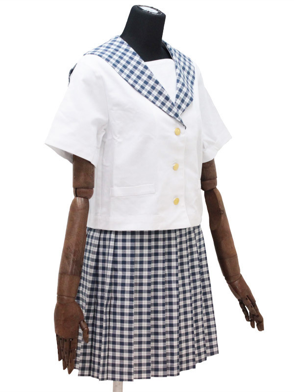 ギンガム風のチェックが爽やか!上品なムードをかもし出すセーラー服コスチューム。 ●真っ白なブラウスに映える蝶デザイン入り金ボタン●細かなチェック柄で夏らしく清涼感たっぷり●襟とお揃い柄のスカートでエレガントな統一感。 暑い日差しの中でもクールに着こなせちゃいそう!お嬢様のような清楚な雰囲気が漂う夏用制服です。 ※水洗い不可、塩素系漂白剤による漂白不可、アイロンは中温で当て布使用、ドライクリーニング可、色落ちの可能性があります、ご注意ください。 ※こちらの商品は在庫の状況により、お届けまでに4日〜7日程度かかる場合がございます。 |