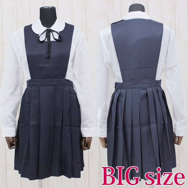 | ■仕様:BIGサイズ:B〜116cm・W〜97cm ブラウス:着丈78cm・袖丈64cm・肩幅50cm・首周り43cm・手首周り24cm ジャンパースカート丈97cm 紐タイ130cm セット内容:ブラウス(丸襟、前ボタン留め)、ジャンパースカート(上半身裏地付き、左肩とウエストにスナップボタン有り、ホック着脱可)、紐タイ |