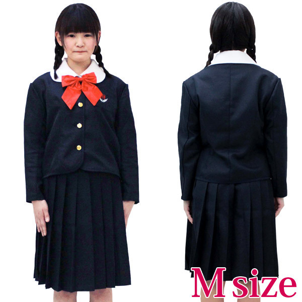 | ■仕様:Mサイズ:B〜95cm・W〜72cm ブラウス:着丈56cm・袖丈18cm・肩幅40cm・首周り40cm ジャケット:着丈51cm・袖丈49cm・肩幅42cm スカート:丈57cm・吊り紐87cm セット内容:ブラウス・ジャケット(前ボタン留、胸ポケット有)、スカート(サイドファスナー、3段ホック留め、ウェスト一部ゴム入)、リボン(アジャスター調整可) |